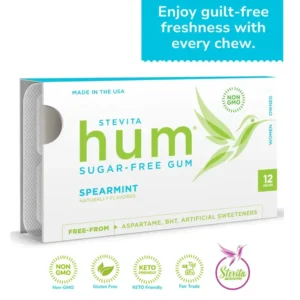 Minty Moments in Every Chew – Refreshingly Natural & NO Aspartame. Refresh your day with Natural Peppermint Hum Gum, a sugar-free breath of freshness designed to invigorate and enliven. With a commitment to natural sweetness and an aspartame-free formula, this gum offers a pure, minty pleasure that’s both healthful and delightful. Packaged in biodegradable paper sleeves, and secured in blister packs for peak freshness, each minty piece is a step towards a healthier lifestyle and a greener planet.